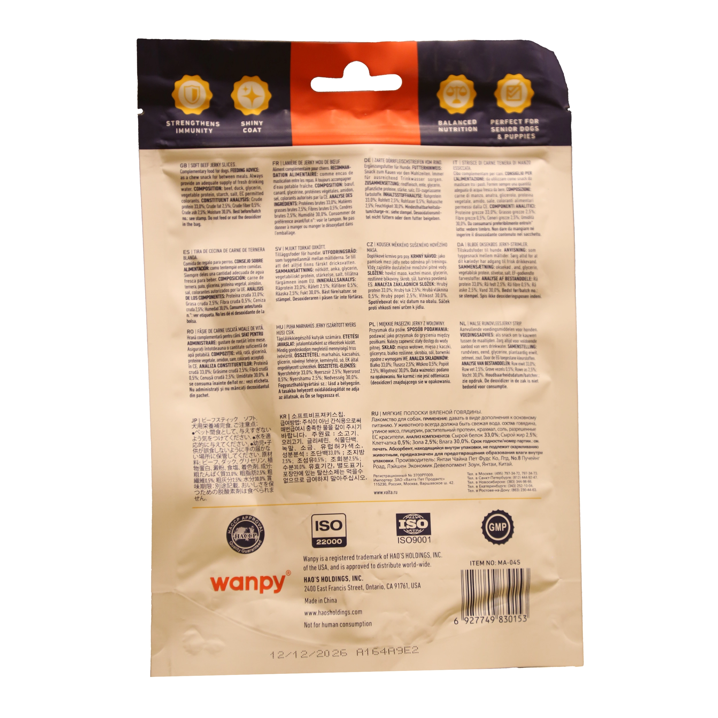 تشویقی سگ ونپی با طعم گوشت گاو Wanpy Beef Steaks Dog Treat وزن 100 گرم